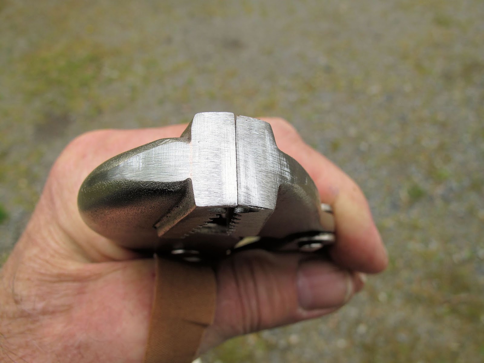 The tip of the pliers was then ground off on the belt sander. Keep in mind I'm trying to grasp a wire end setting very tightly against the main wire. I can always grind it down more if needed.