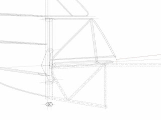 The factory fuselage drawing shows the upper longerons flat the full length of the fuselage. On my fuselage the upper longerons are bent down 5/8" from the last fuselage bay (forward of the stabilizer front spar) to the tail post, as shown here. The older drawing of the tail (7012) shows the same angle. This bend lifts the stabilize angle about 3 degrees. When Frank Pavliga test flew his NINE with the longerons straight he found a very tail heavy plane. There are no other flying NINEs to compare handling. It looks like 5/8" is about what is needed to correct the tail heaviness. If I ever find the lift, drag and pitching moment curves for the Aeromarine 2A airfoil I can do the math to figure this out more accurately. The airfoil was tested at MIT in Dec. 1922 and the curves were apparently published in the 1925 edition of Handbook of Instructions for Airplane Designers. Google claims to have the 1925 edition but its not. I'm sure MIT has the original data and the Air Force museum should have the handbook since it was done at McCook Field.